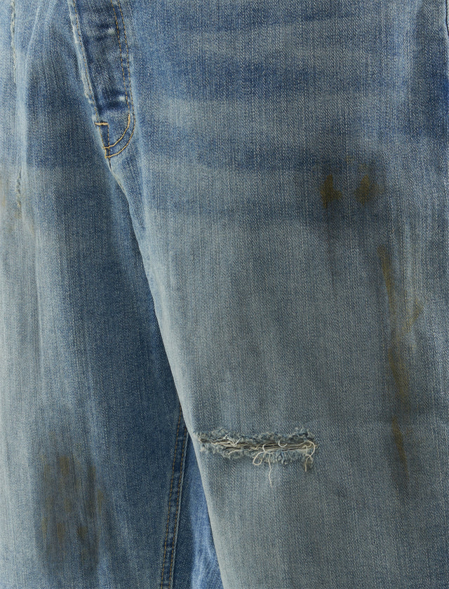 38A DOUBLE KNEE SHORTS "WASHED INDIGO" $170.00