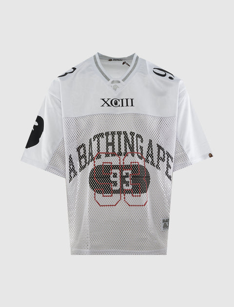 Stand out on and off the field with this BAPE Line Camo Football Jersey. Featuring bold camo accents, striking logo details, and a relaxed fit, it’s pure streetwear energy with a sport-inspired edge.