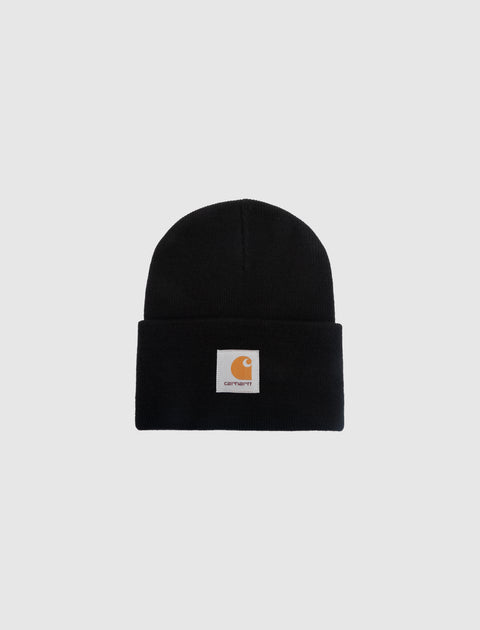 Wool beanie. Ribbed knit detailing throughout. Logo patch at front. Folded brim.