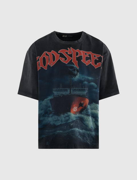 Make waves in the Godspeed Sea Sick Tee. Featuring a striking nautical-inspired graphic and rich navy tone, it's a bold, stylish essential for everyday statement-making.