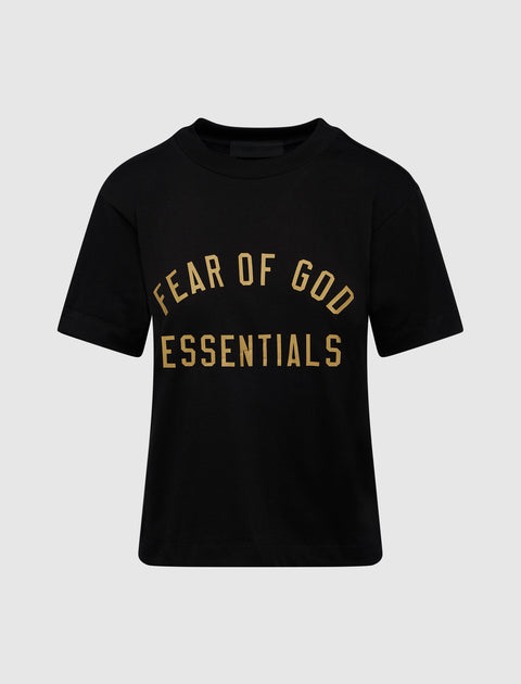 Made from soft cotton, this relaxed Women's Jersey Crewneck Tee features a bold "Fear of God Essentials" graphic and a branded back collar label for effortless style.