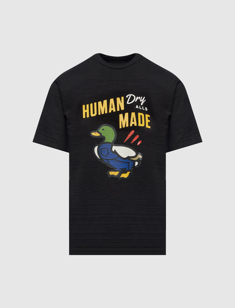 Classic-fit short sleeve cotton t-shirt. Ribbed crewneck. Graphic logo text featuring duck overall print at front. Graphic logo print at back.