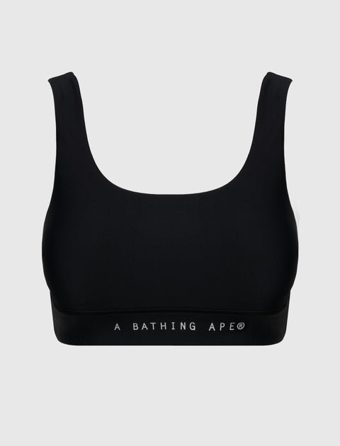 The Women's Sport Bra from A Bathing Ape features a graphic logo on the elastic hem and an ape print on the back for a stylish, supportive fit.