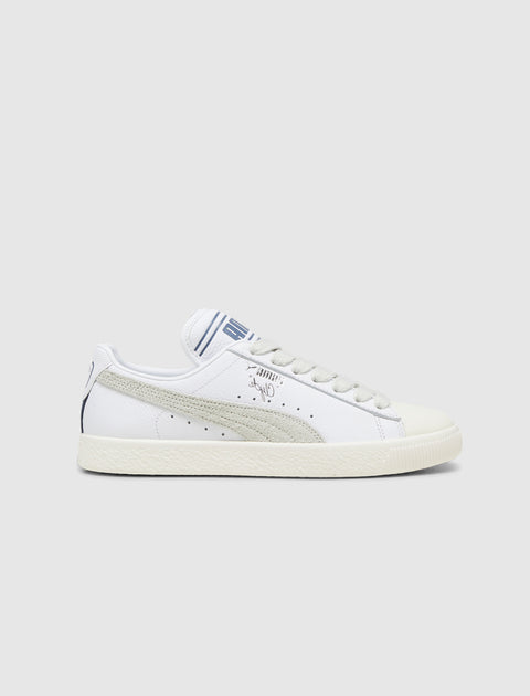 Low top sneakers. Leather upper. Leather overlays around the eyelet panels. Front lacing. Leather tongue with a printed logo at the top. Stamped logo below the outer eyelet panel. Suede logo-shaped overlays on the side panels. Leather overlay on the back of the collar with a stamped logo in the center. Rubber midsole. Rubber outsole.
