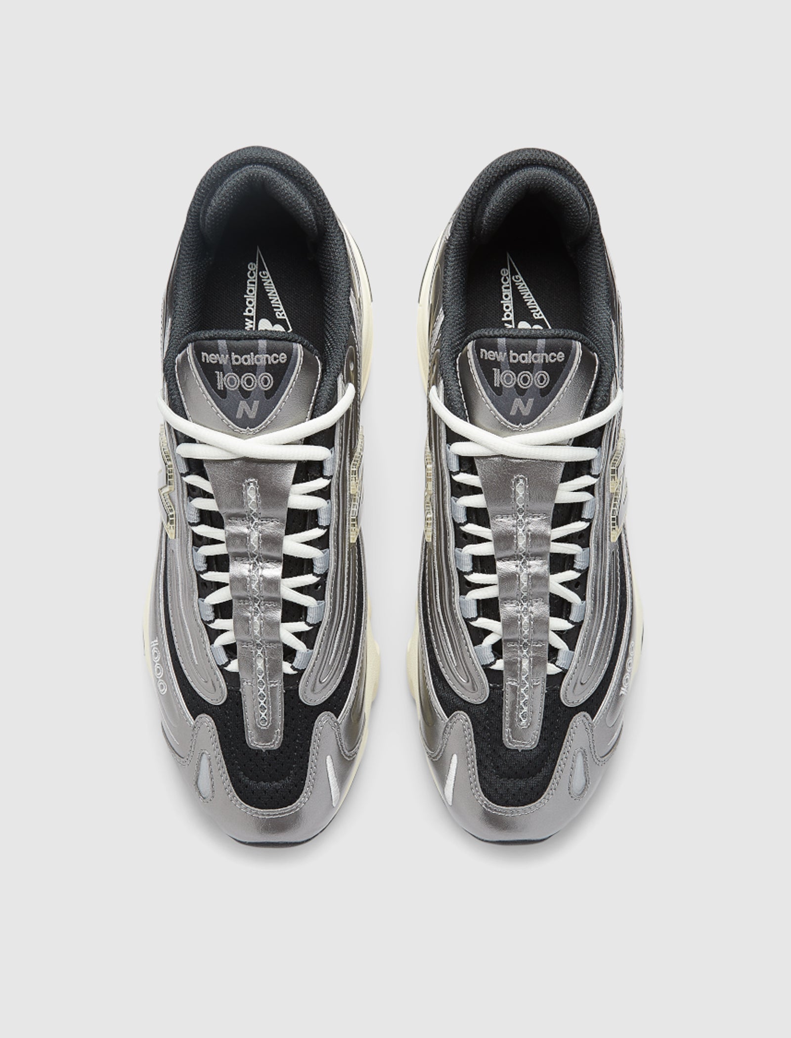 Low top sneakers. Mesh upper. Synthetic textile overlays around the toe, on the side panels, eyelet panels, and heel counter. Synthetic logo motif shaped patches stitched on the side panels. Padded mesh tongue with a synthetic textile overlay down the middle. Printed logo at the top. Composite foam midsole. Rubber outsole.