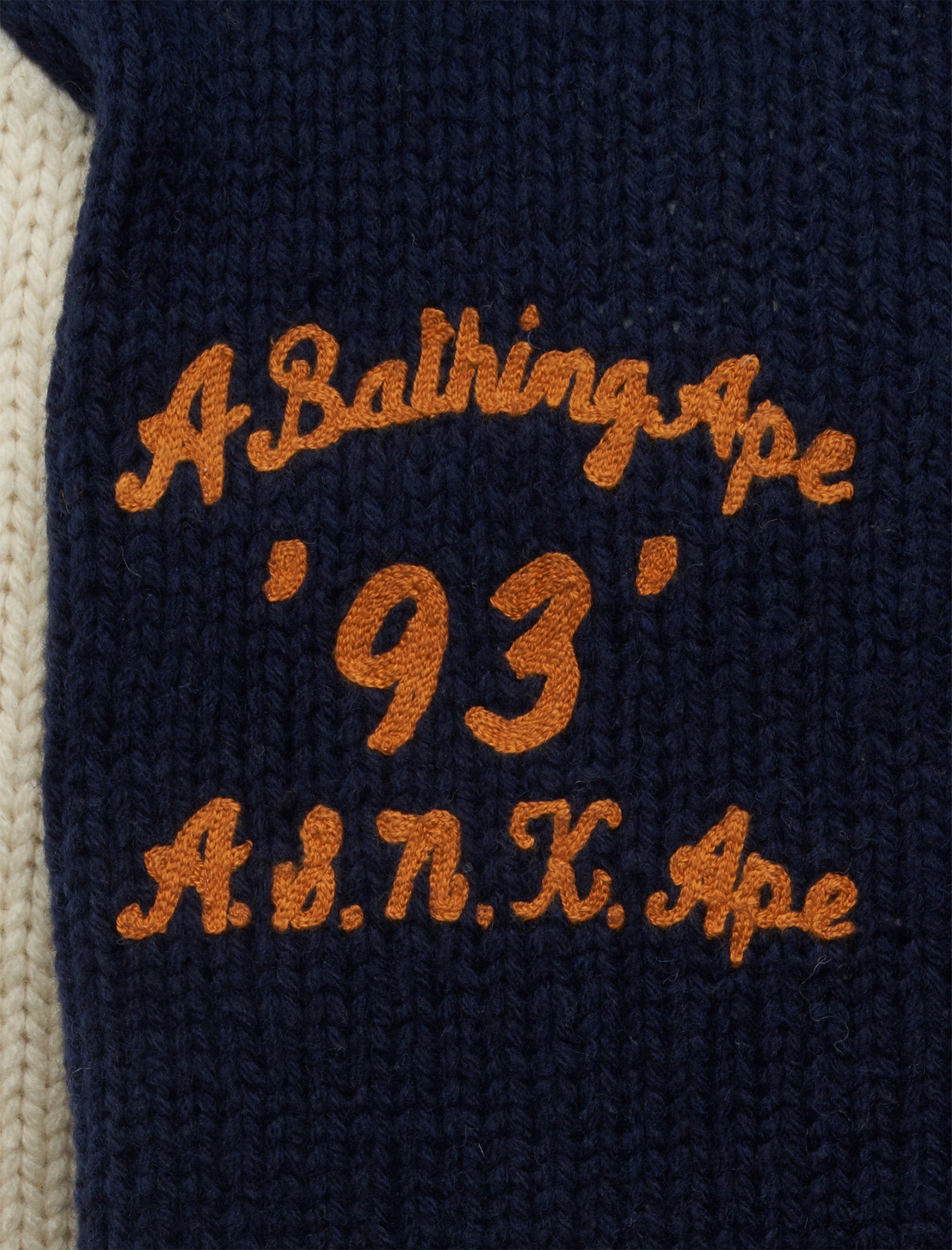 Experience the unique style of A Bathing Ape’s Cowichan Cardigan. This knit cardigan features a varsity-inspired design that brings a bold and distinctive flair to your wardrobe.