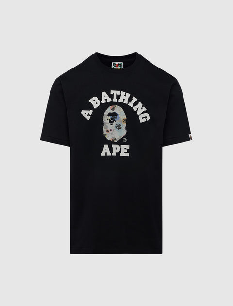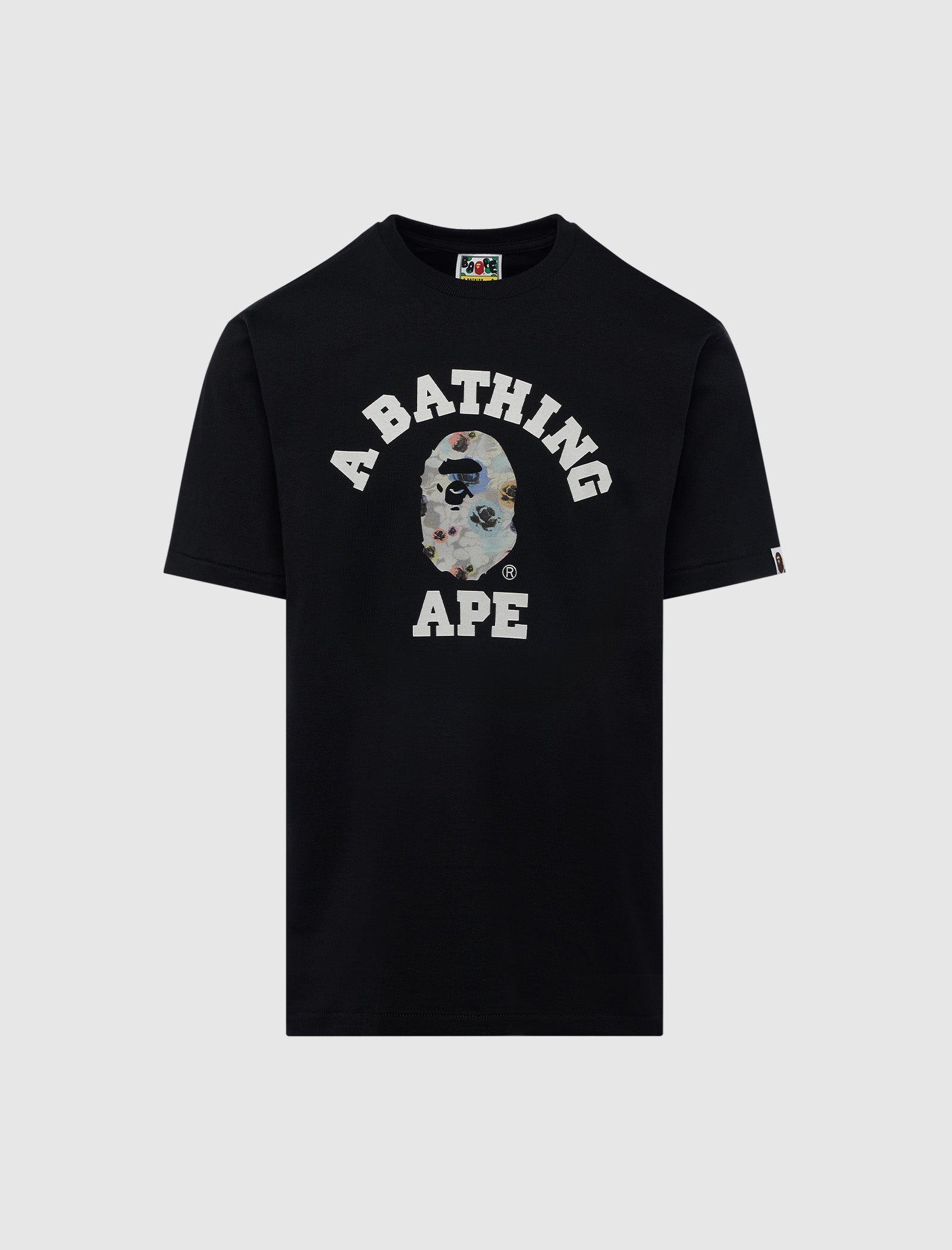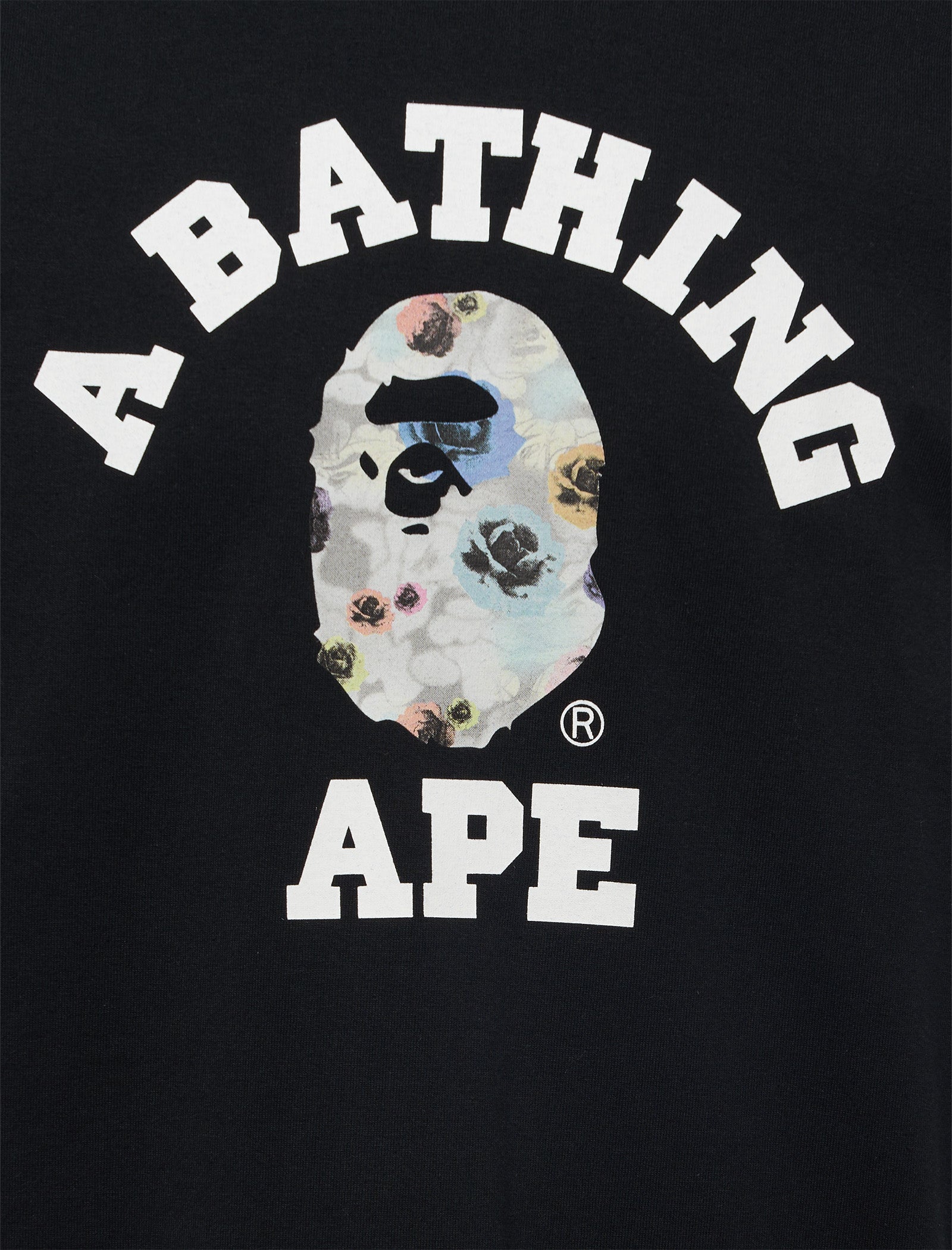 Elevate your style with A Bathing Ape's Floral Camo Tee, featuring the iconic logo text alongside a floral ape graphic on the front for a unique, eye-catching design.