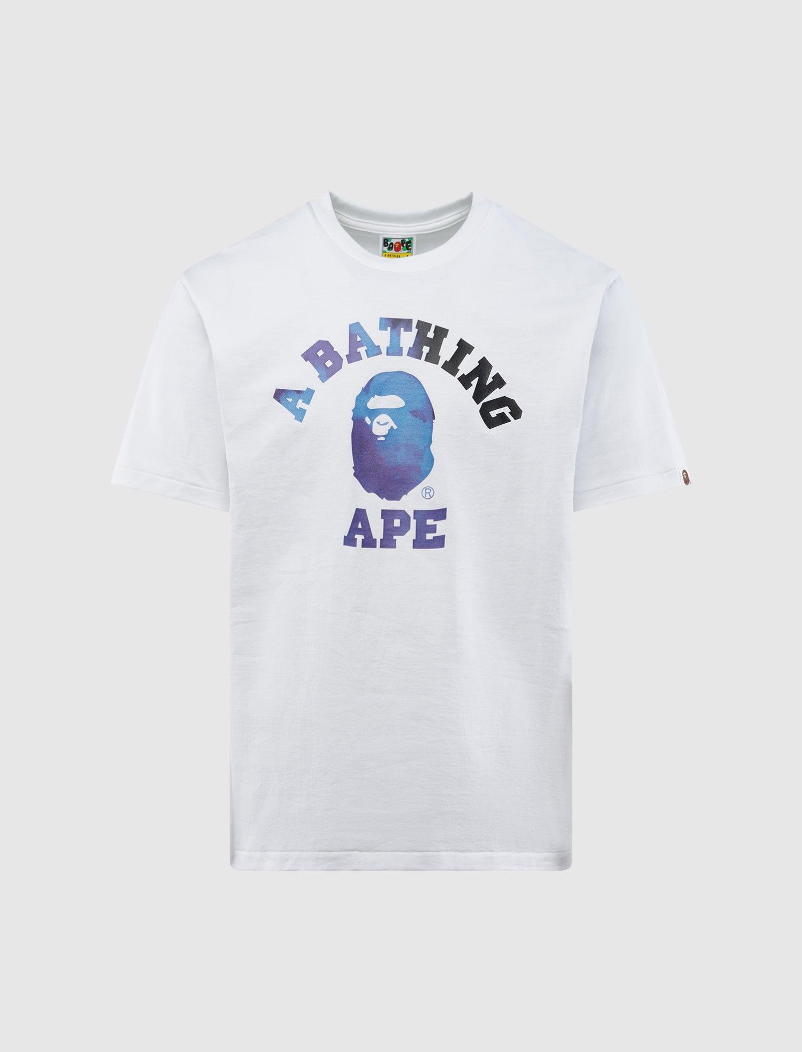A Bathing Ape’s Tie Dye College Tee combines the classic logo and ape print with a unique tie dye pattern for a standout look.