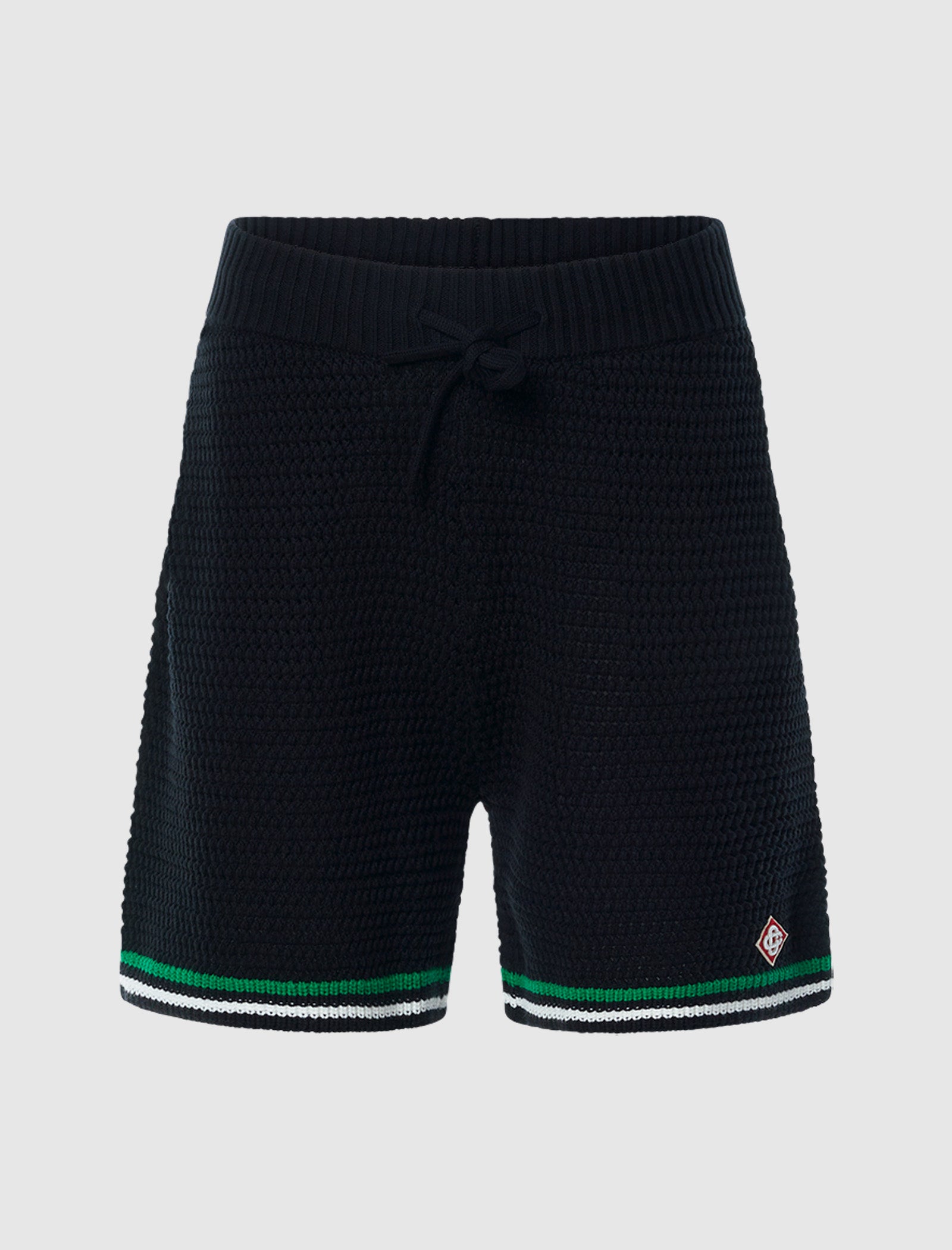 Relaxed-fit knit shorts. Elasticized drawstring waistband. Two slit pockets at sides. Logo patch above hem. Contrast stripes at hems.