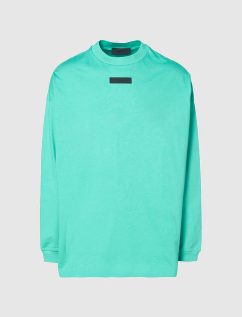 The Fear of God Essentials Long Sleeve Tee combines soft cotton with a relaxed fit and subtle rubberized branding for a clean, stylish look.