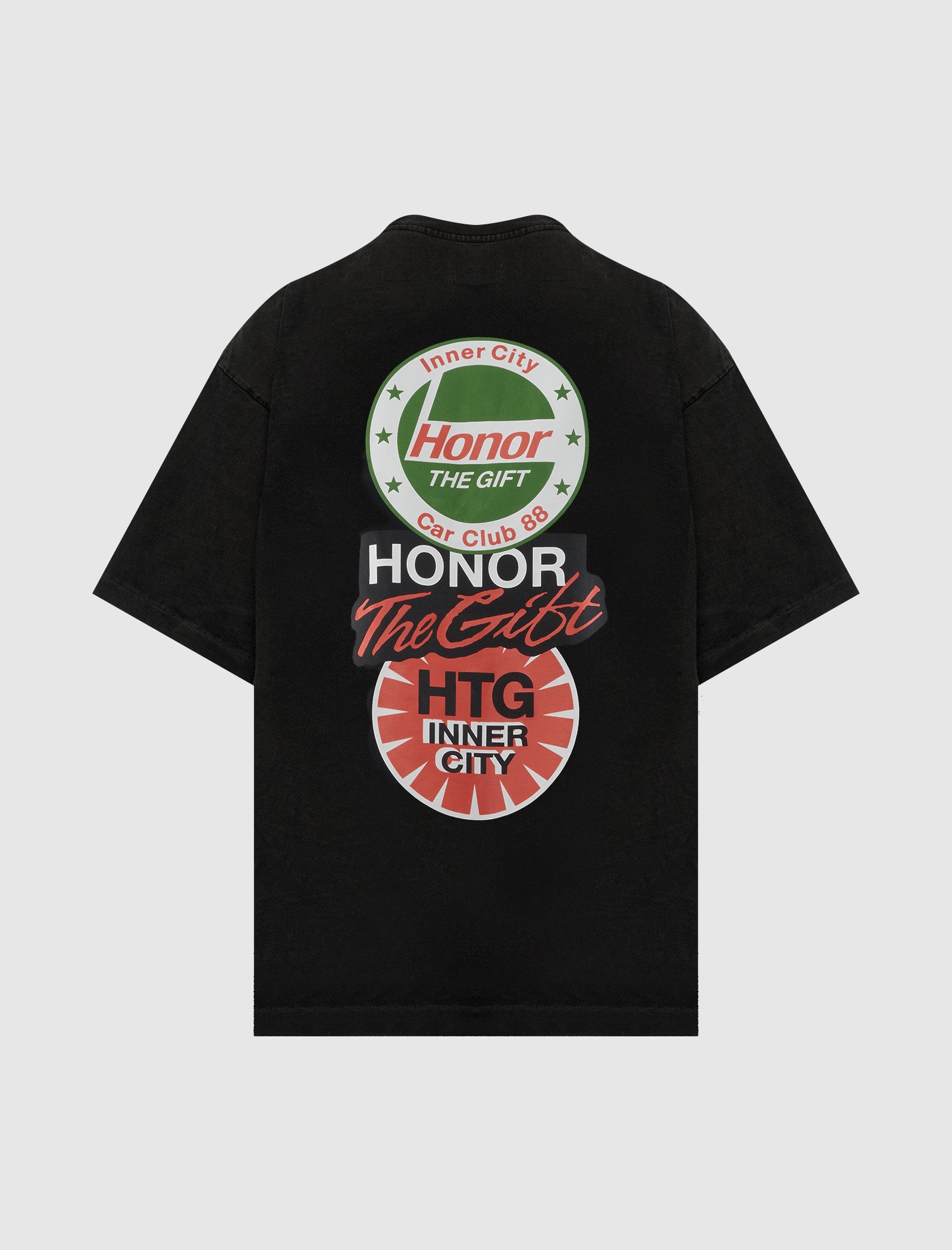 Honor The Gift’s Auto S/S Tee features heavyweight cotton, a ribbed crewneck, bold screen-printed graphics on front and back, and a custom woven label for a stylish finish.