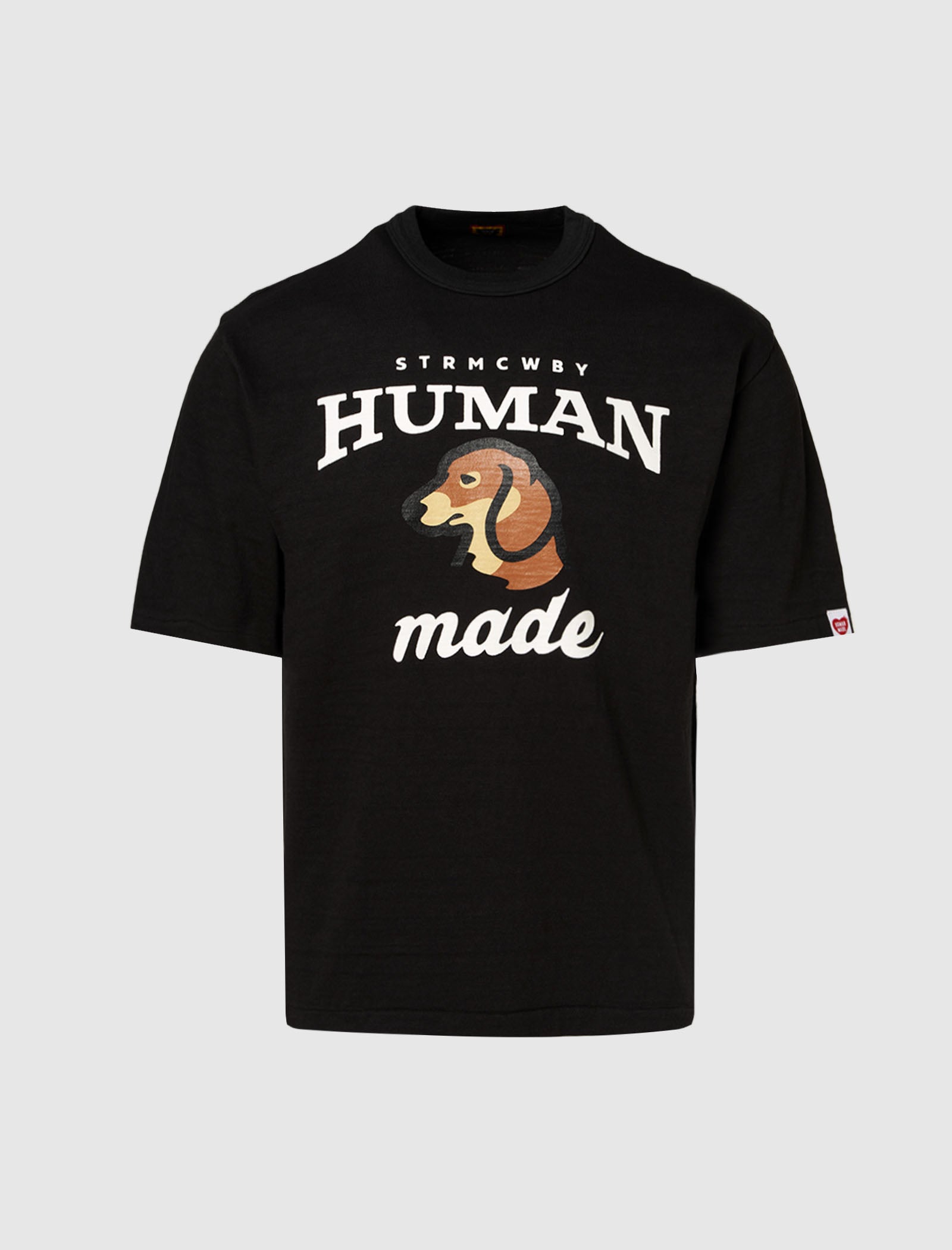 Regular-fit short sleeve cotton t-shirt. Crewneck. Graphic logo text, print and text at front. Graphic logo text at back. Woven brand label at sleeve.
