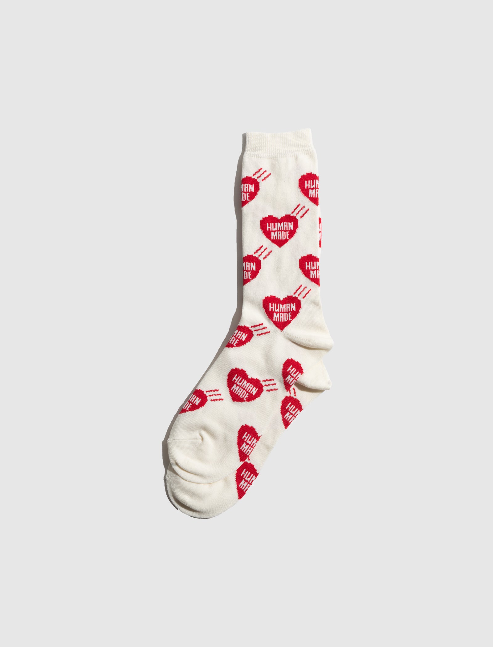 Cotton-blend knit socks. Embroidered logo heart prints featuring logo texts throughout. Round toes.