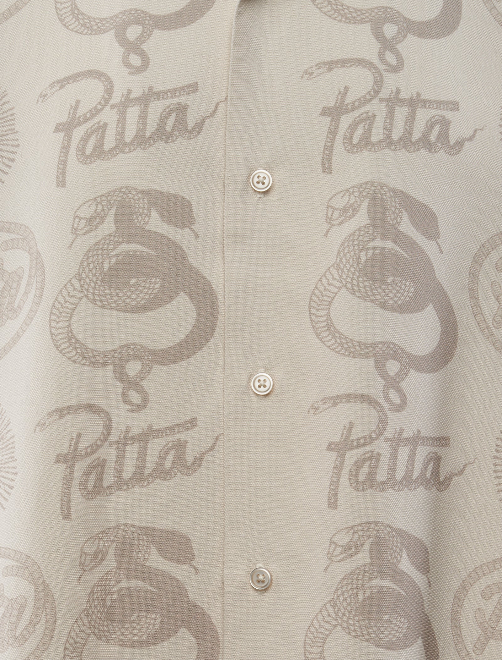 Patta Serpentes Polo blends sporty tailoring with bold snake-inspired graphics, crafted from breathable cotton pique. It offers sharp style, relaxed comfort, and standout street-ready flair.