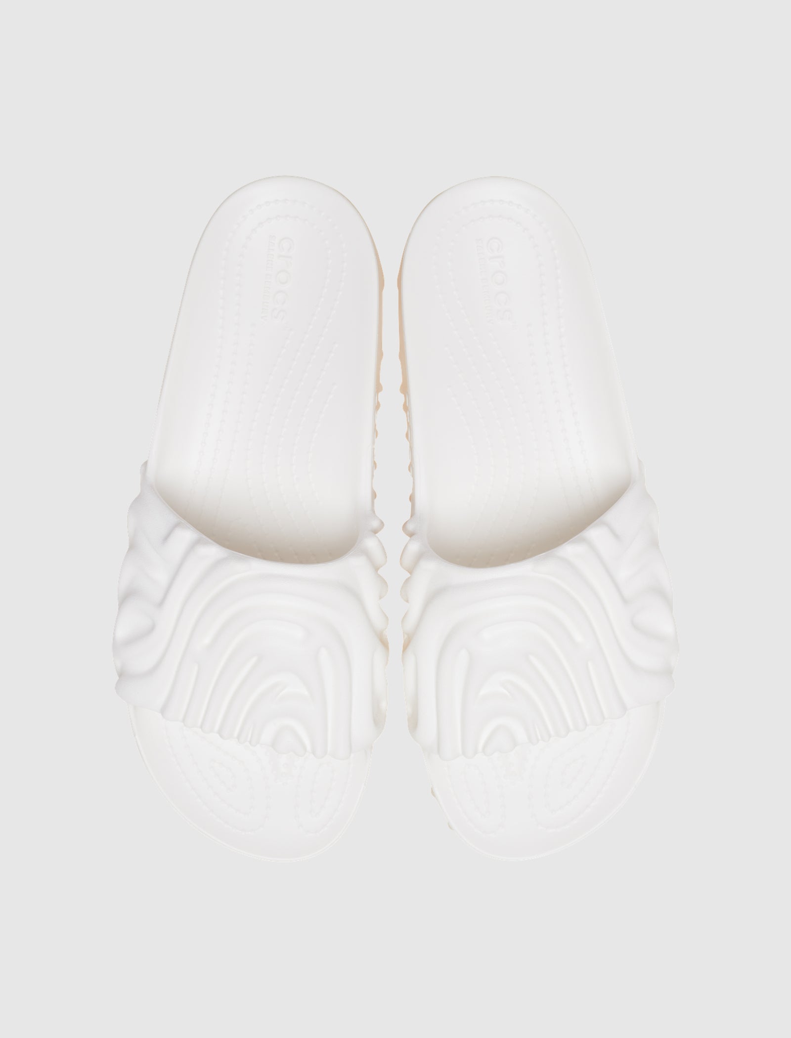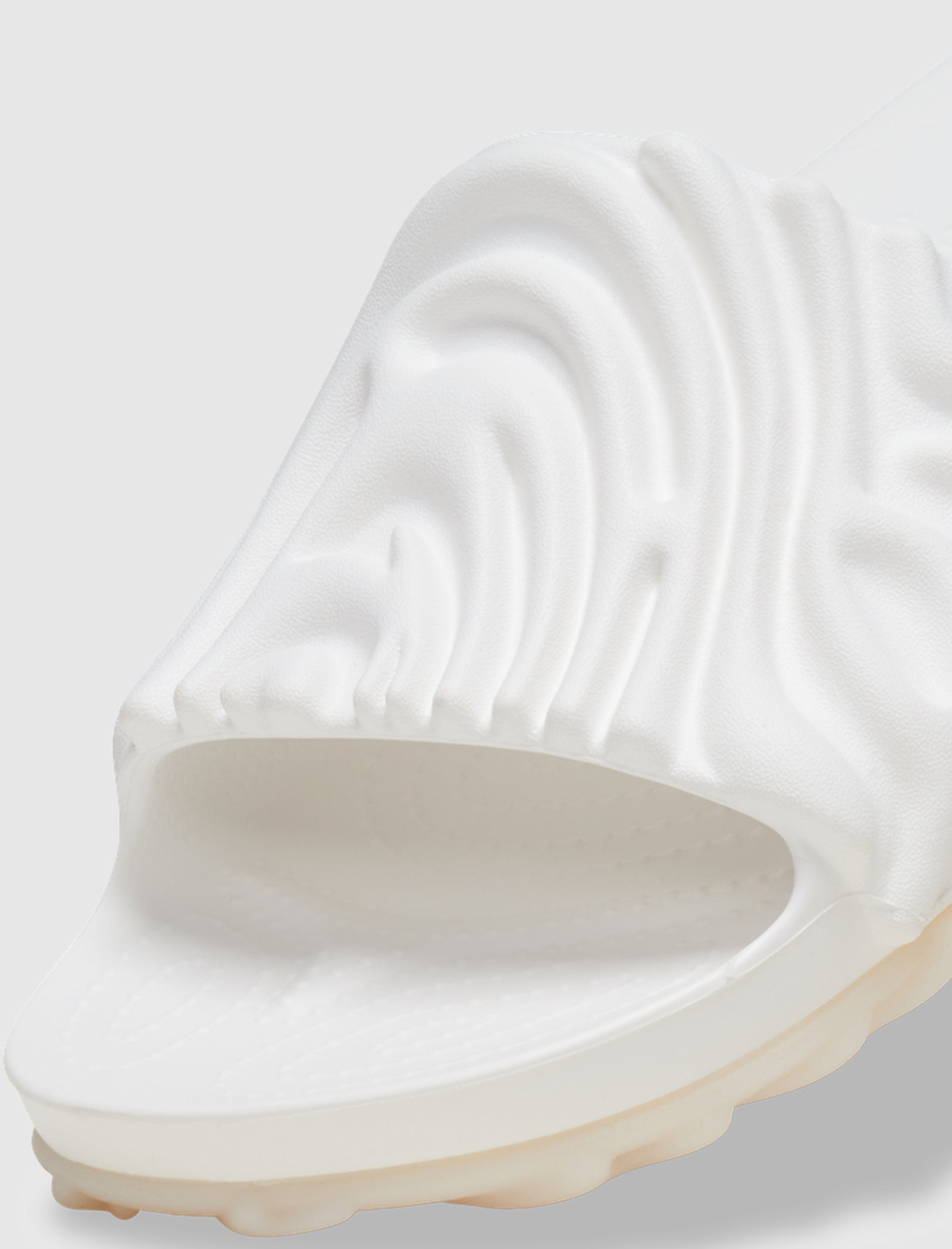 Croslite composite foam slides. Texture molded top strap. Open toe. Molded footbed. Textured croslite foam outsole.