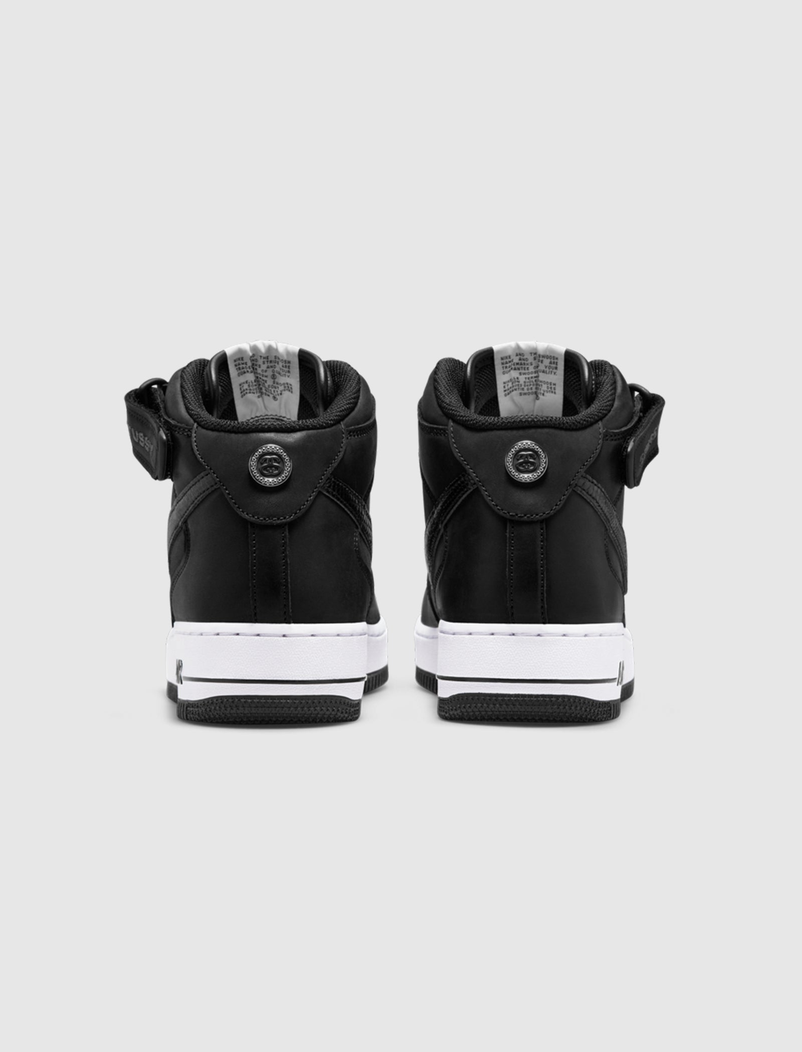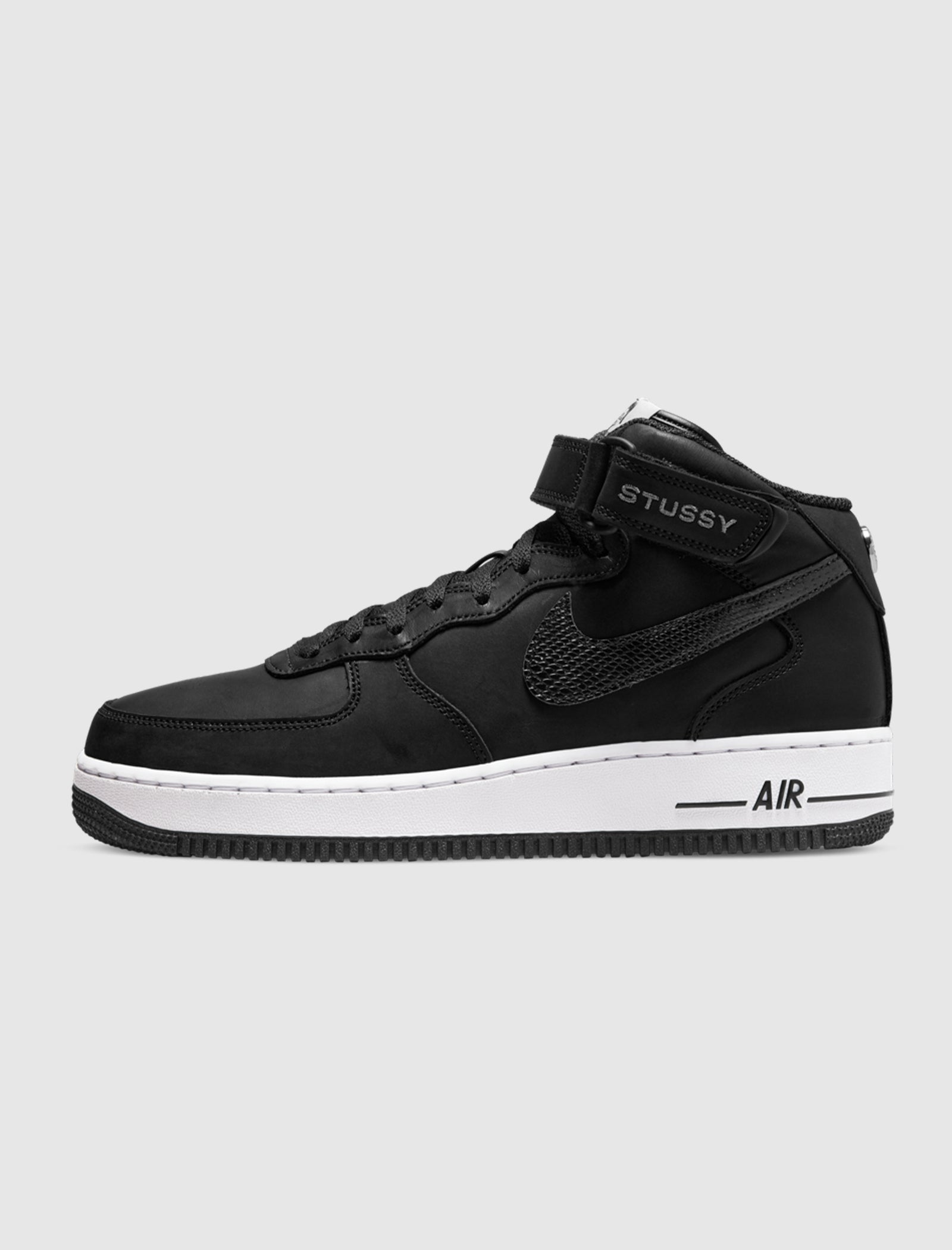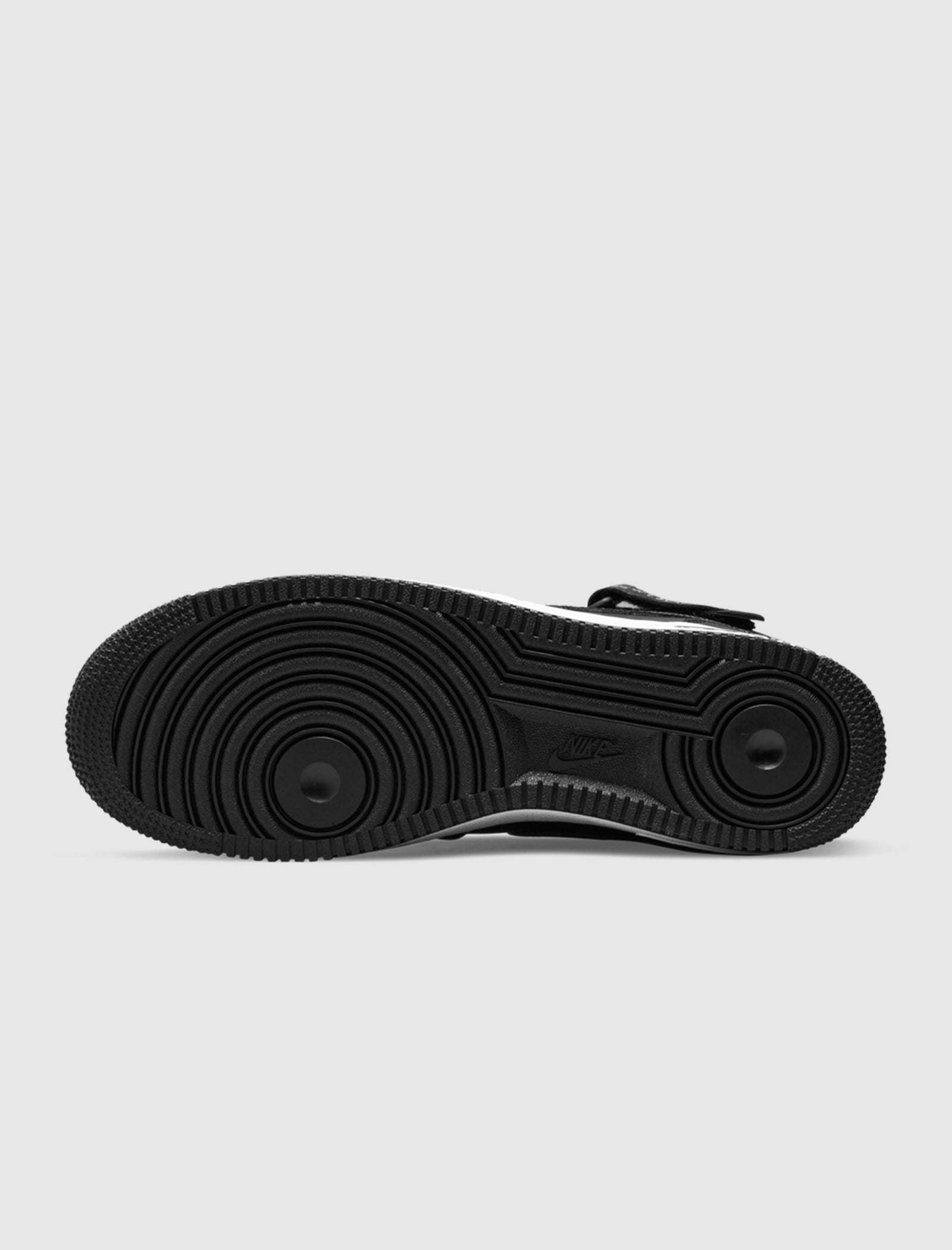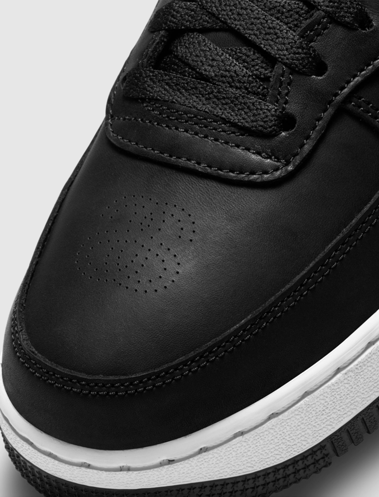 Mid top sneakers. Leather upper. Leather overlays around the toe, eyelets, and heel. Perforated logo on the leather toe box. Leather side panels, and collar. Front lacing with an adjustable velcro strap at the ankle. Stitched logo on the side panels. Leather heel tab. Rubber midsole. Rubber outsole.