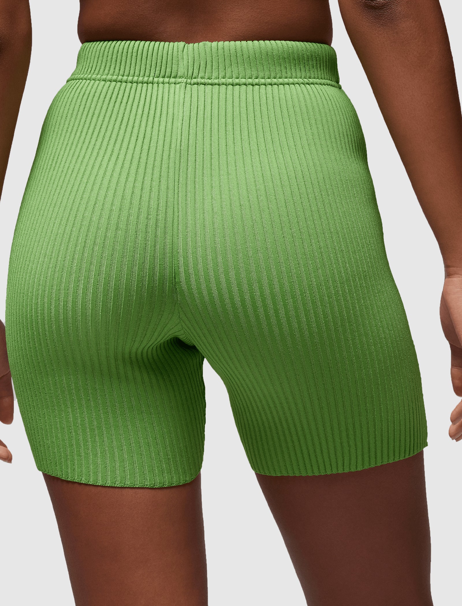 Tight-fit Ribbed biker shorts. Elasticized waistband. Woven brand label at hem.